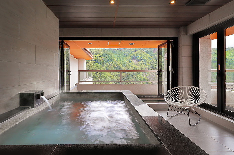 - Onsen, dans les espaces intérieurs situés dans des hôtels traditionnels ryokan
